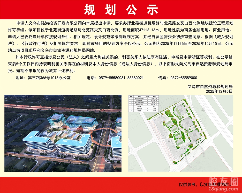 公示期為2025年12月6日至2025年12月15日,公示地點為項目現場和義烏市自然資源和規劃局網站。